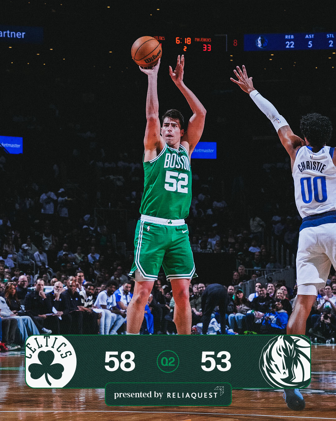 凯尔特人队的布朗得到24分、7个篮板和7次助攻,怀特得到20分、4个篮板和4次助攻,普理查德得到18分、7个篮板和5次助攻,奎塔得到17分和15个篮板,塔图姆16投6中,得到15分、12个篮板和7次助攻。独行侠队的汤普森得到19分,弗拉格得到16分、8个篮板和6次助攻,马绍尔得到13分,克里斯蒂得到12分,威廉姆斯得到11分、7个篮板和4次助攻。